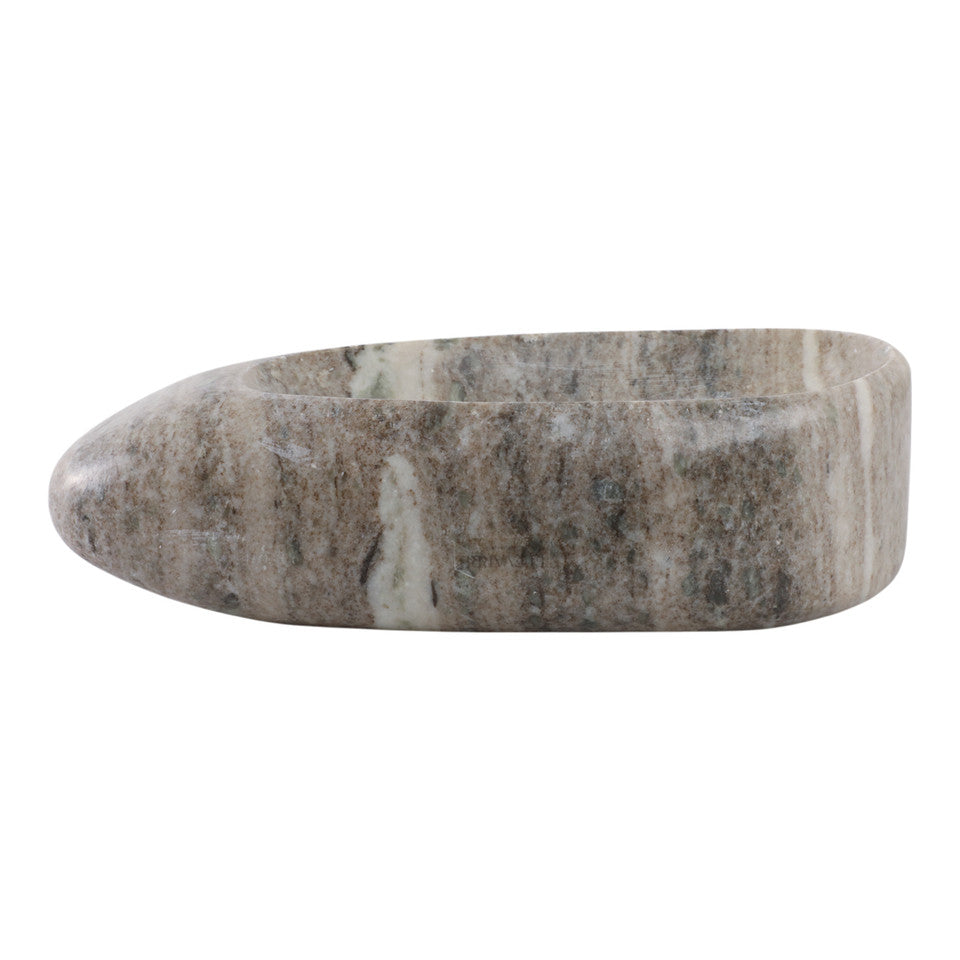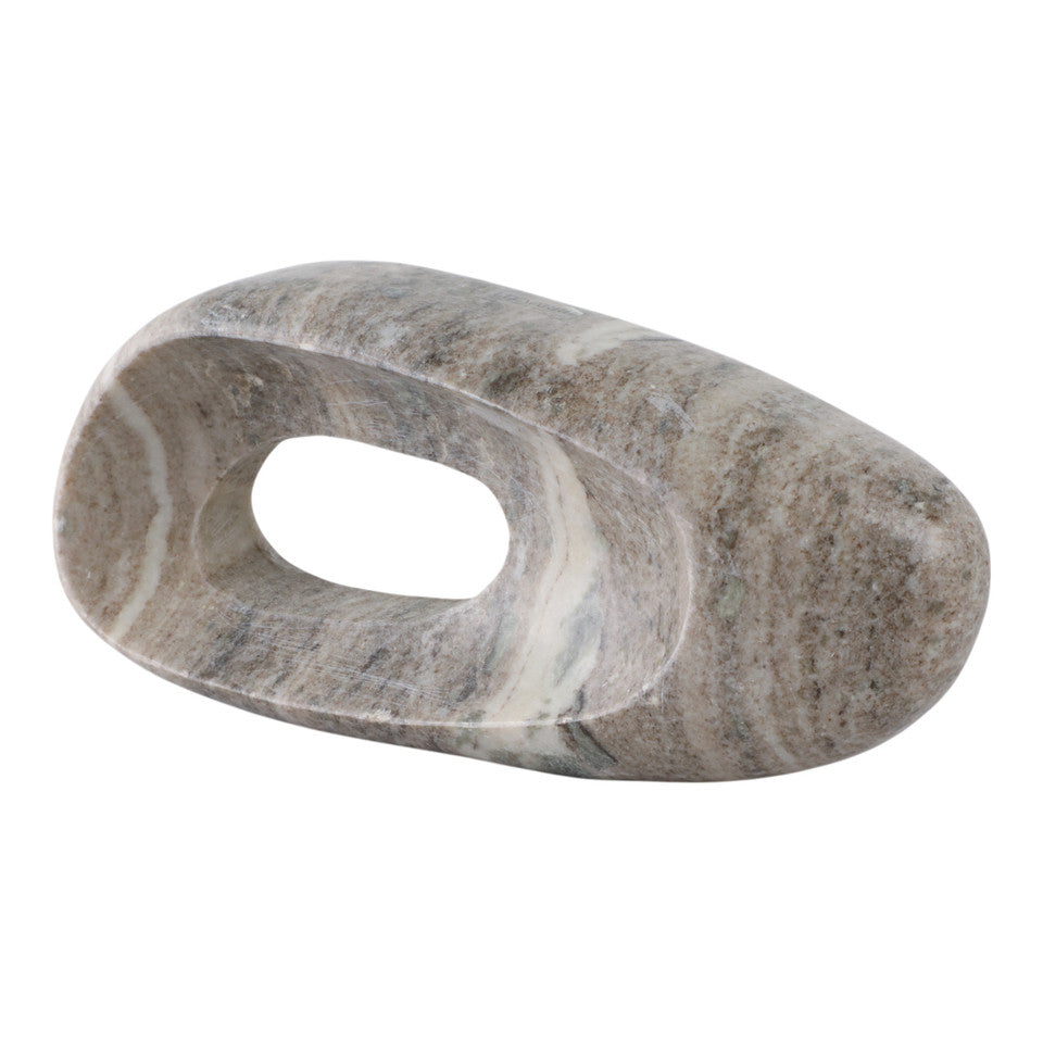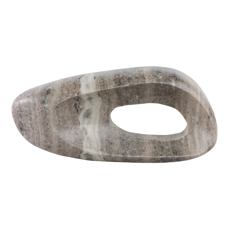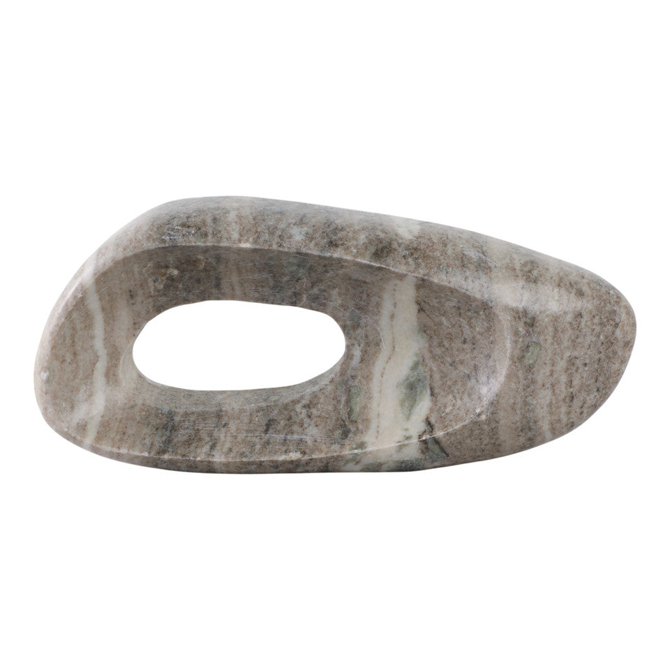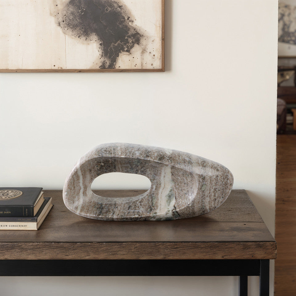 This sculptural marble accent features a smooth, organic oval shape with an open center, showcasing natural ivory and tan veining. Its minimalist form and substantial presence make it a refined statement piece perfect for modern or casual home décor, whether displayed on a console, tabletop, or shelf.
