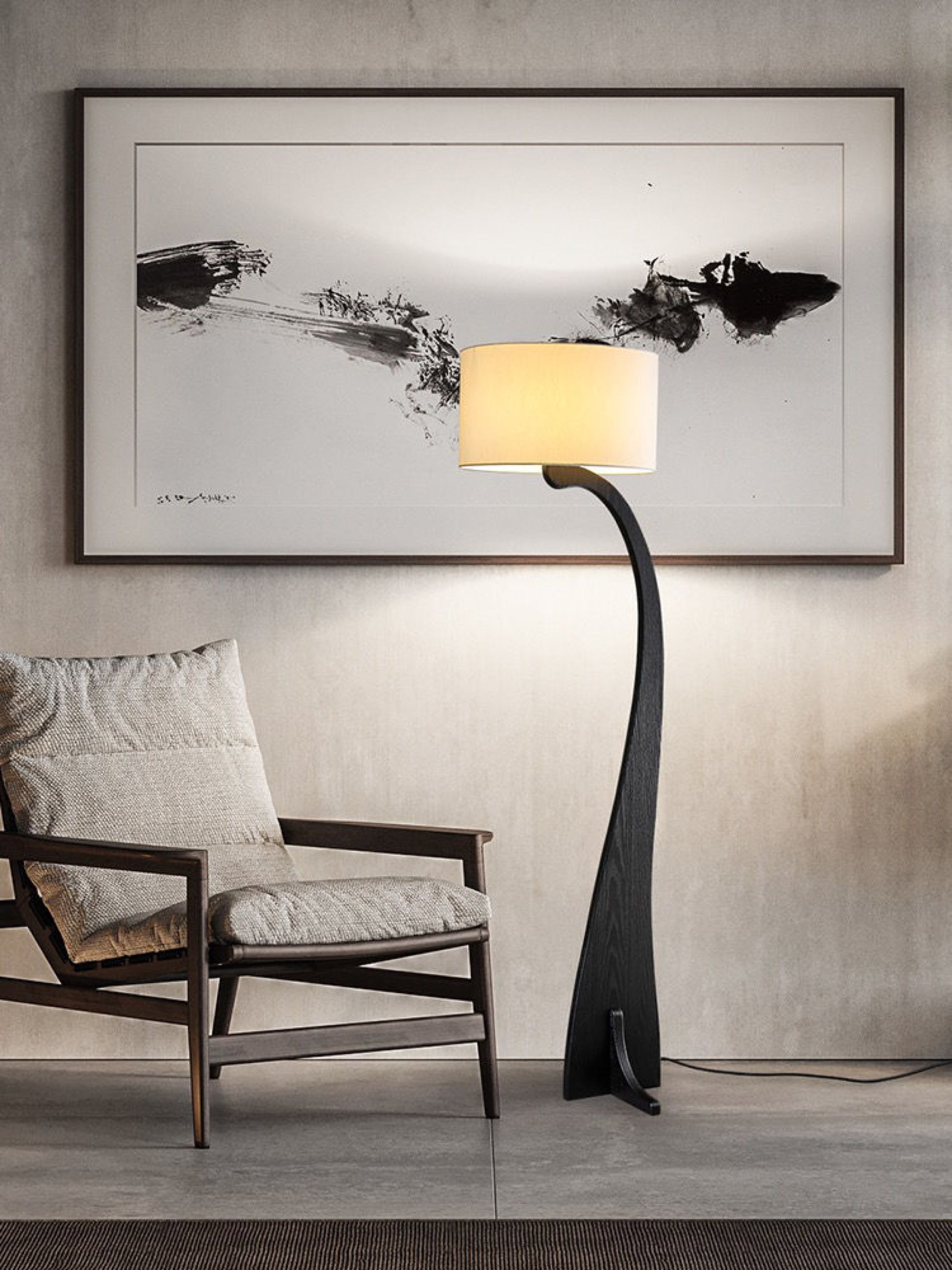 The Amazona Floor Lamp is a beautiful and elegant wooden piece designed to bring warmth and sophistication to any space. Its smooth, organic lines and white lampshade create a harmonious balance between natural charm and modern style. Perfect for living rooms, offices, or reading corners.
