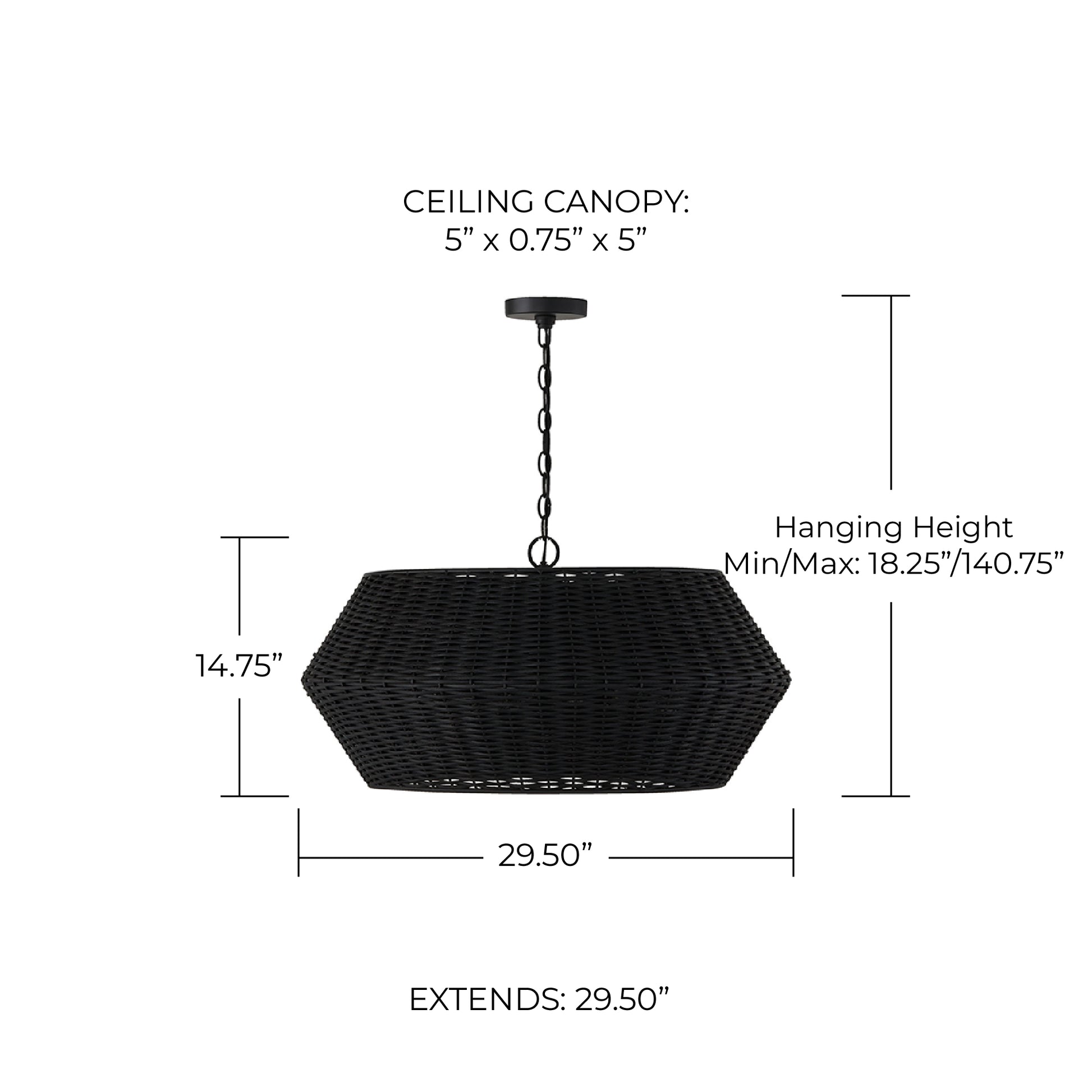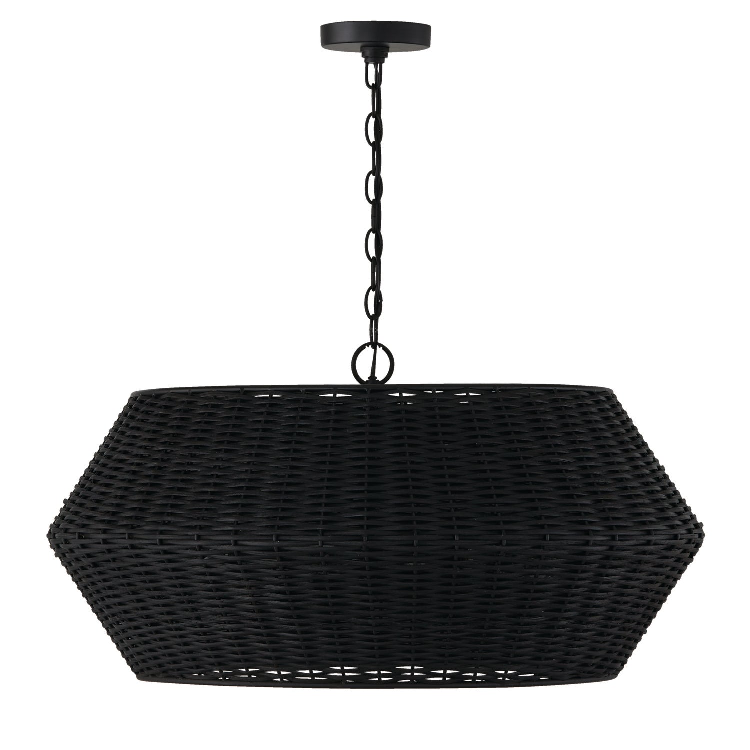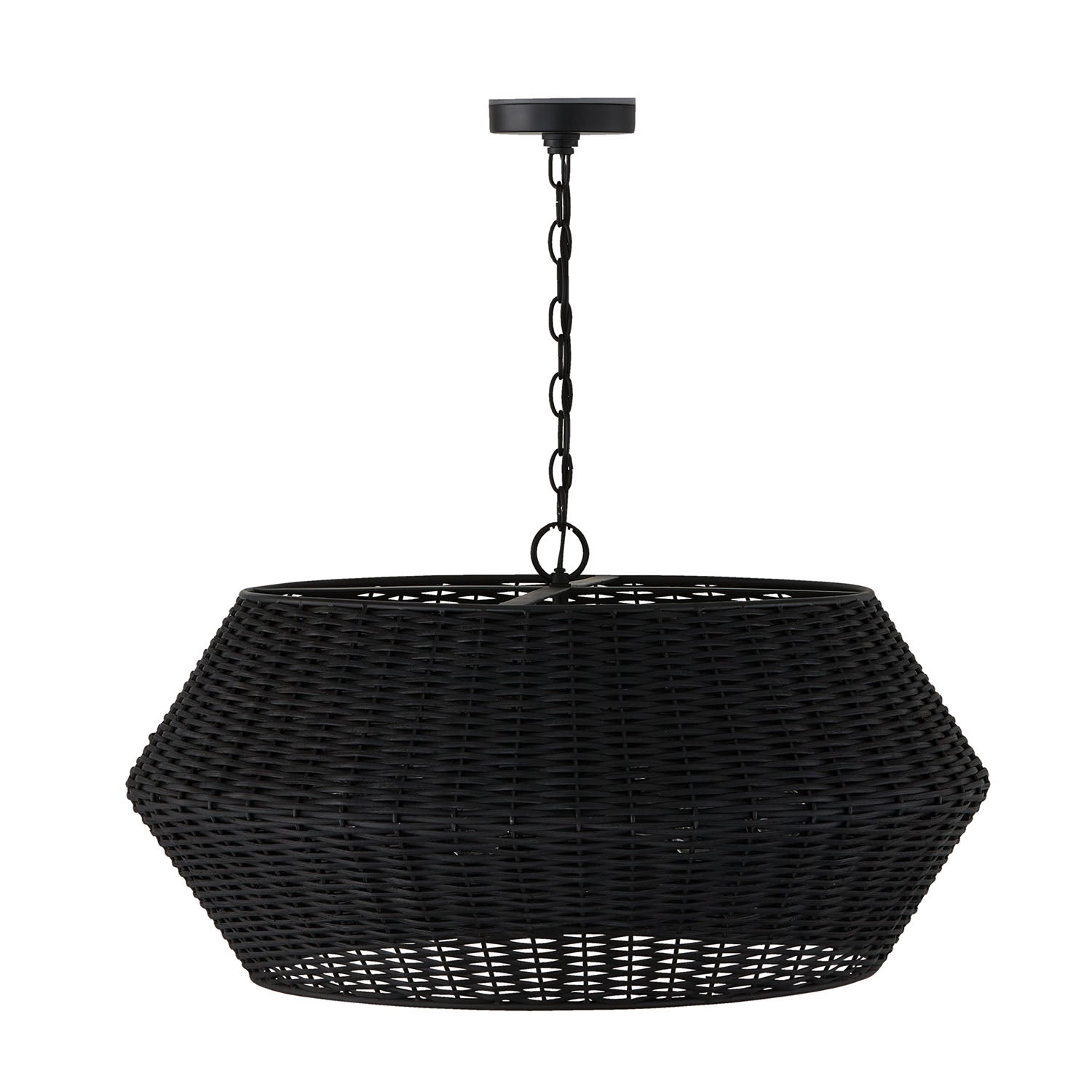 Timeless materials meet modern forms in the Boca Pendant. The handcrafted woven rattan adds dimension to the angled silhouette, while the hand-painted Matte Black finish offers a dramatic aesthetic.