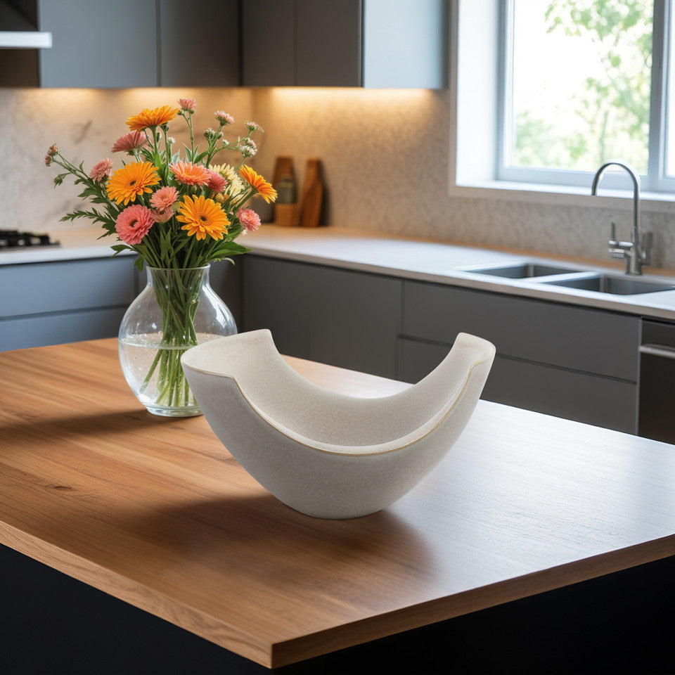 The Cardoso Oversized Portugal Bowl brings sculptural elegance to any space. Handcrafted from earthenware pottery in a soft ivory-beige tone, its curved silhouette adds a sense of modern artistry and sophistication. Perfect as a centerpiece or decorative accent, this bowl reflects timeless Portuguese craftsmanship.
