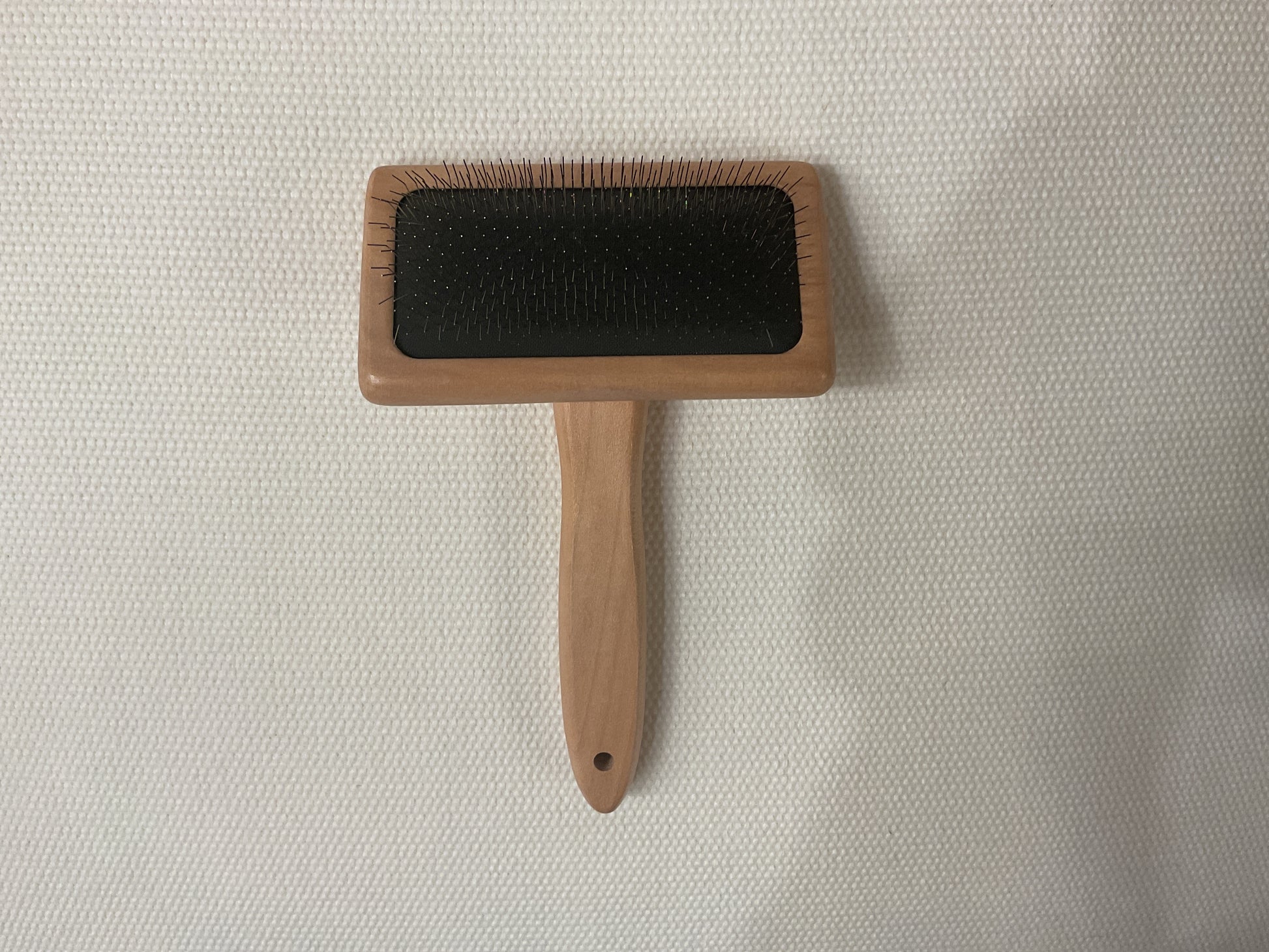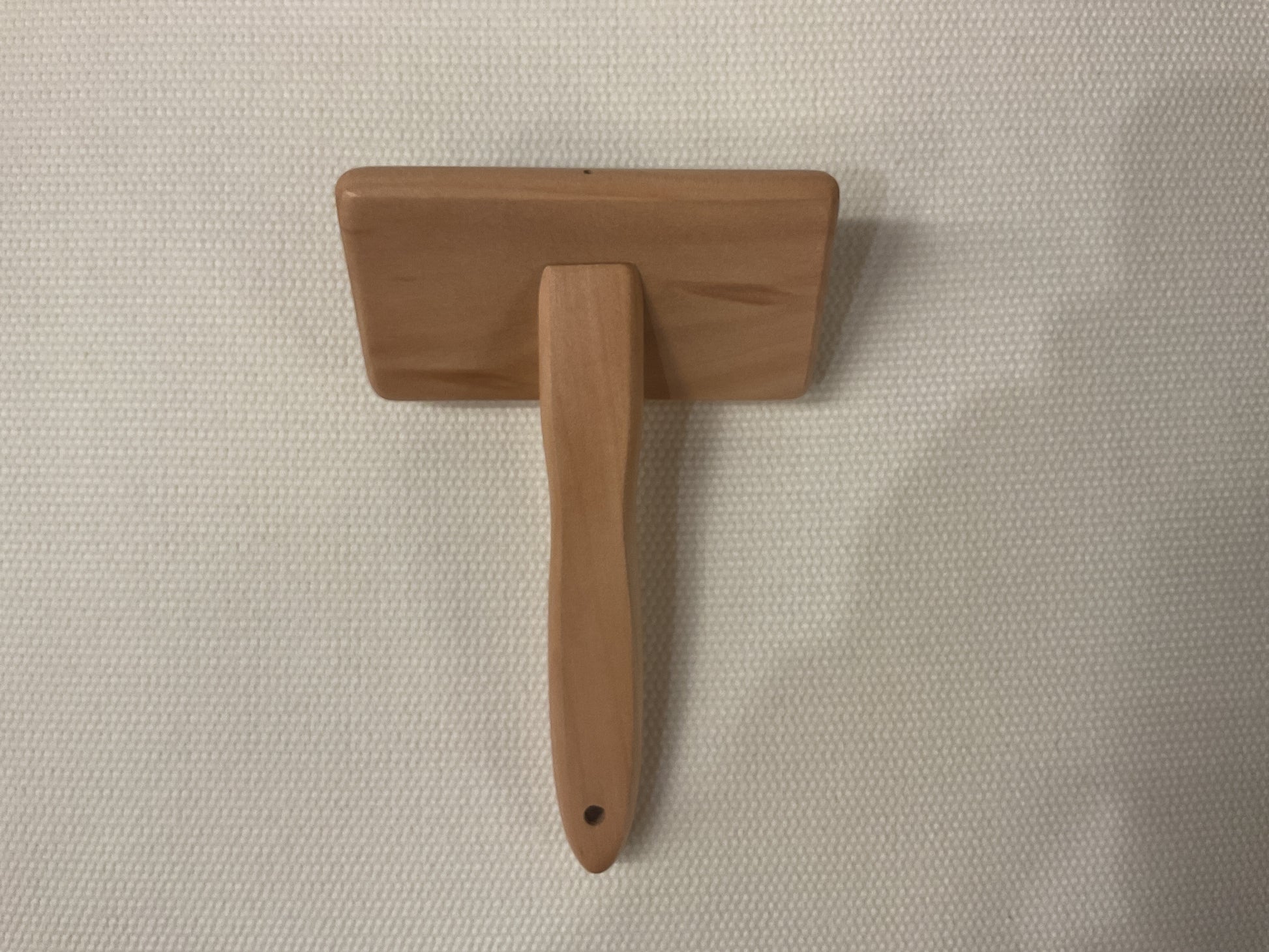 Pomplon brush designed for combing and finishing tapestries, cords, and tassels. Ideal for smoothing fibers and maintaining the softness and uniform texture of handcrafted textile pieces.