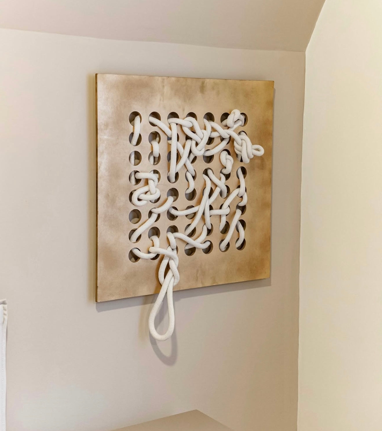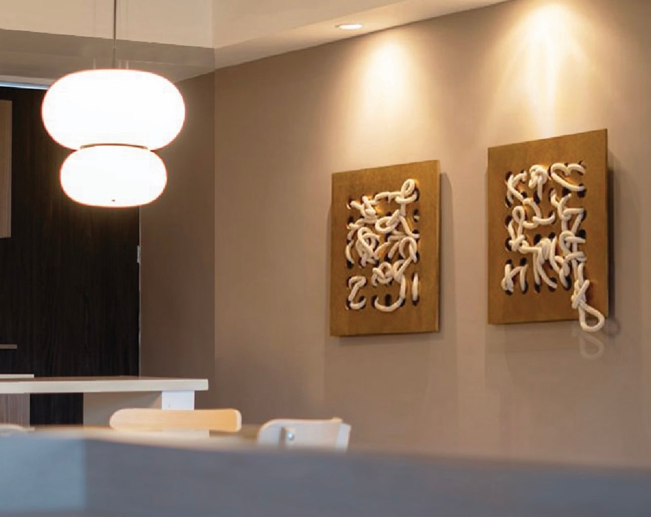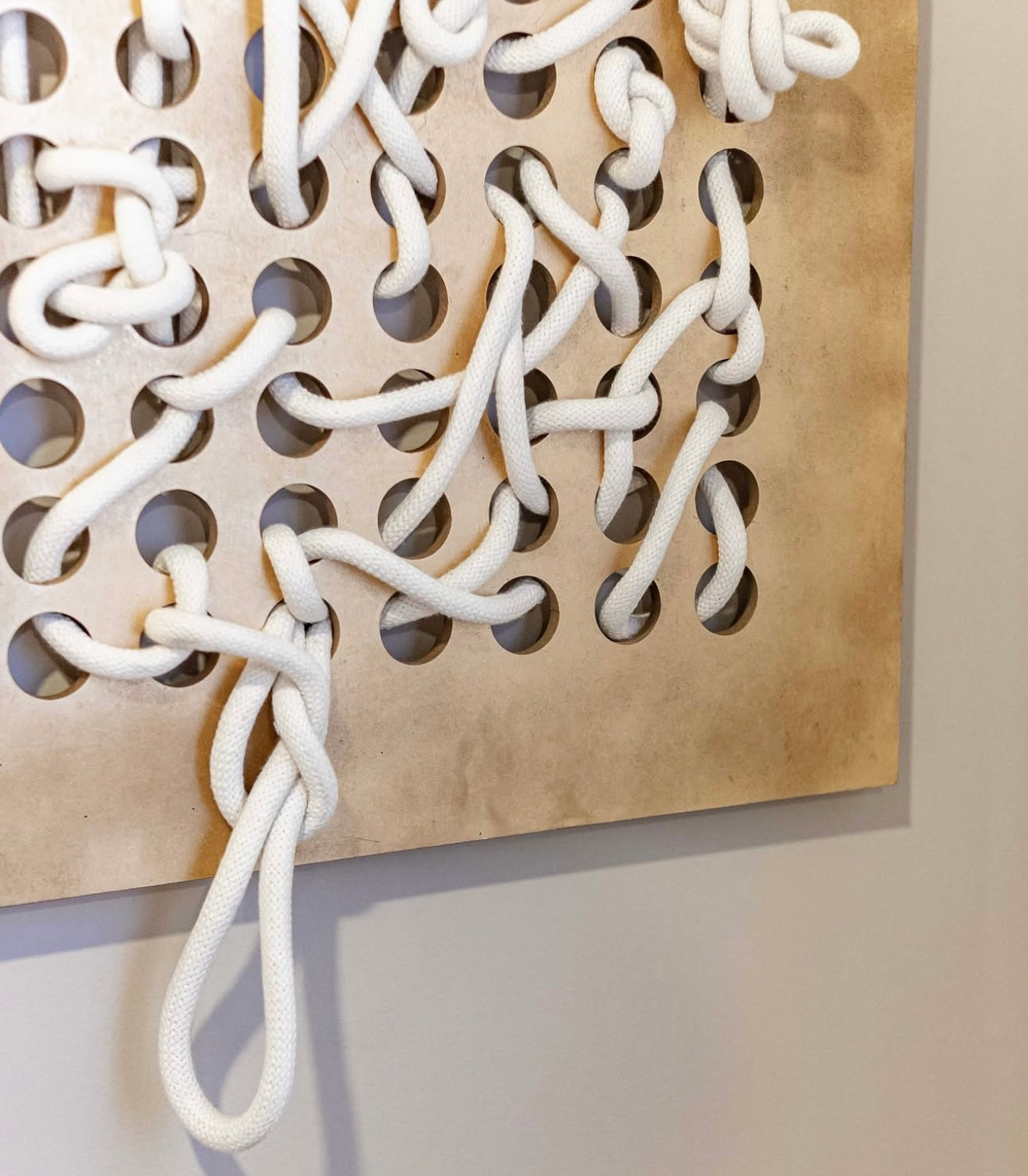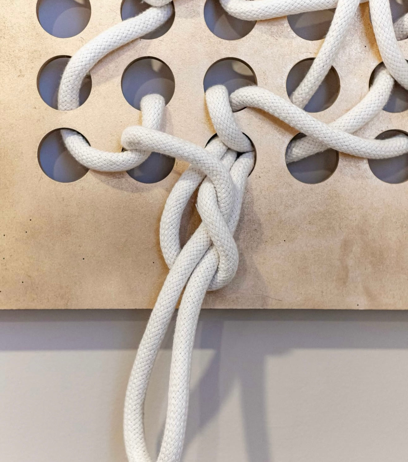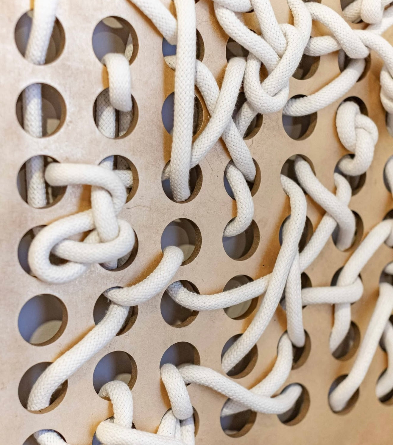 The Záparo Large Wall Art Set includes two handcrafted textile panels that combine woven cotton cords and sculptural design. Each piece features intricate knotting and layering, creating a sense of movement and organic texture against a neutral background.