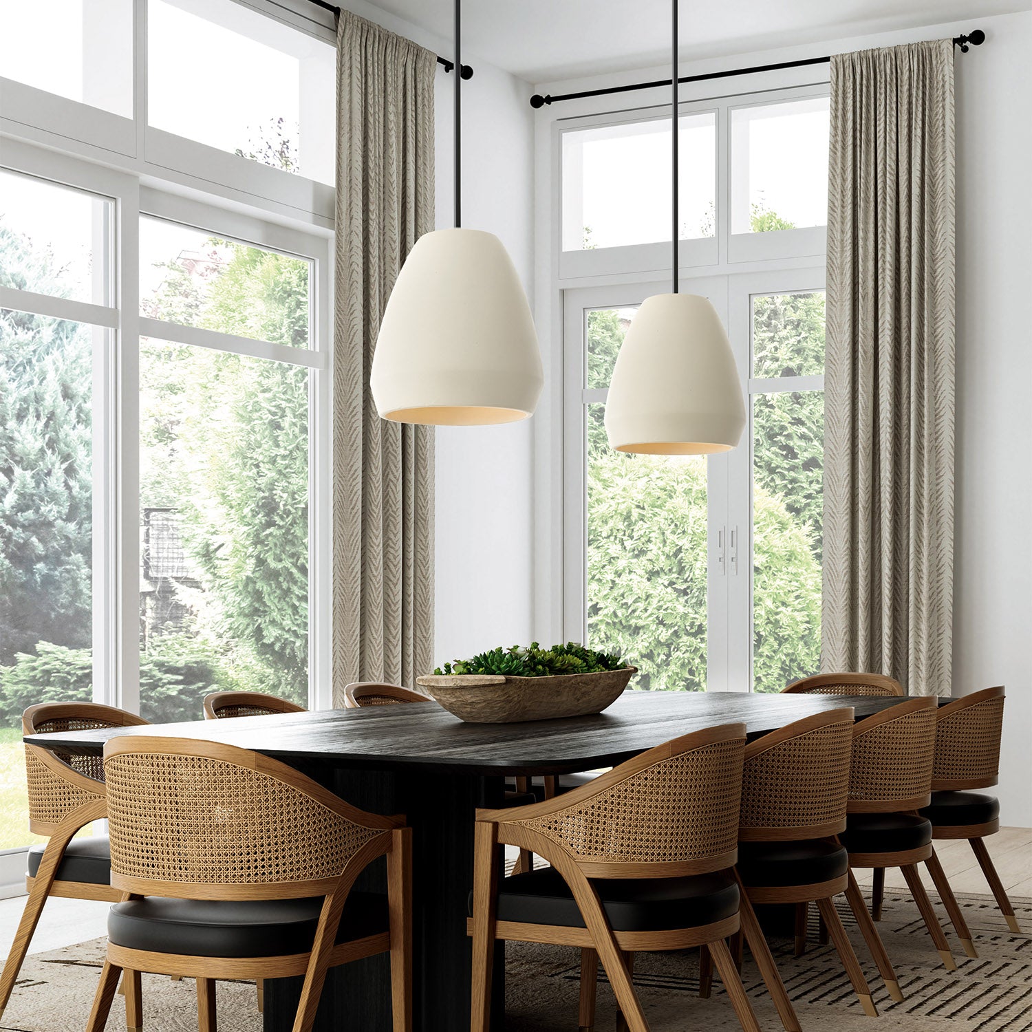 Handcrafted of terracotta, the Della Large Pendant delivers organic appeal with natural character — no two pieces are quite the same. Inspired by earth tones and painted by hand, the soft Ivory finish brings a light aesthetic to the sculpted silhouette, grounded with Matte Black metal details.