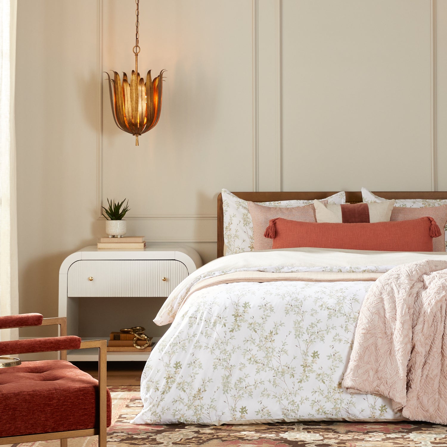 Botanically inspired, the Eden Medium Pendant brings sophisticated style into any space. The Antique Gold finish creates its own unique beauty, giving this luminaire an everlasting glow.