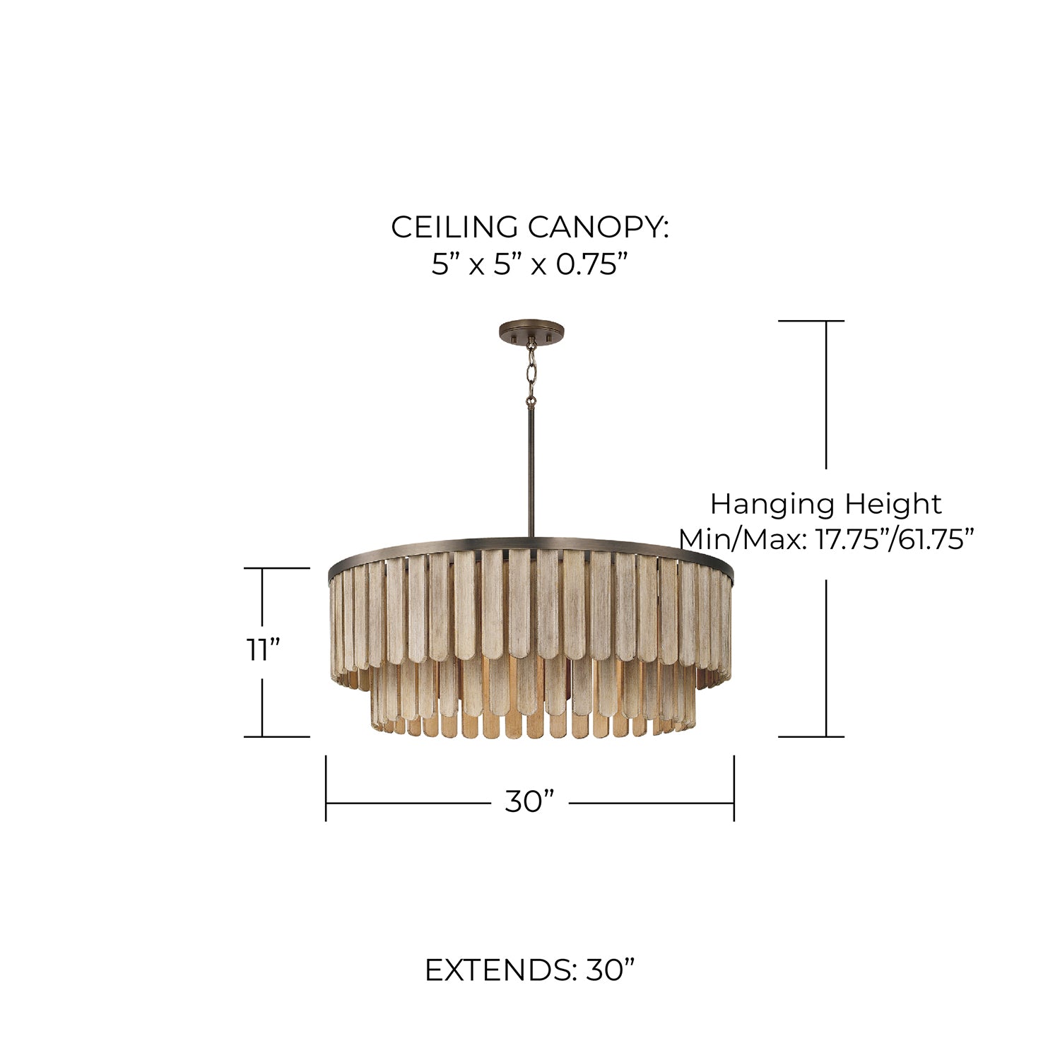 Handcrafted of mango wood, the Jada Large Pendant celebrates muted earthtones and modern organic style. The subtly distressed Nordic Grey wood adornments are carved to bring elegant texture and depth to the tiered form, complemented with the Dark Brass metal frame.