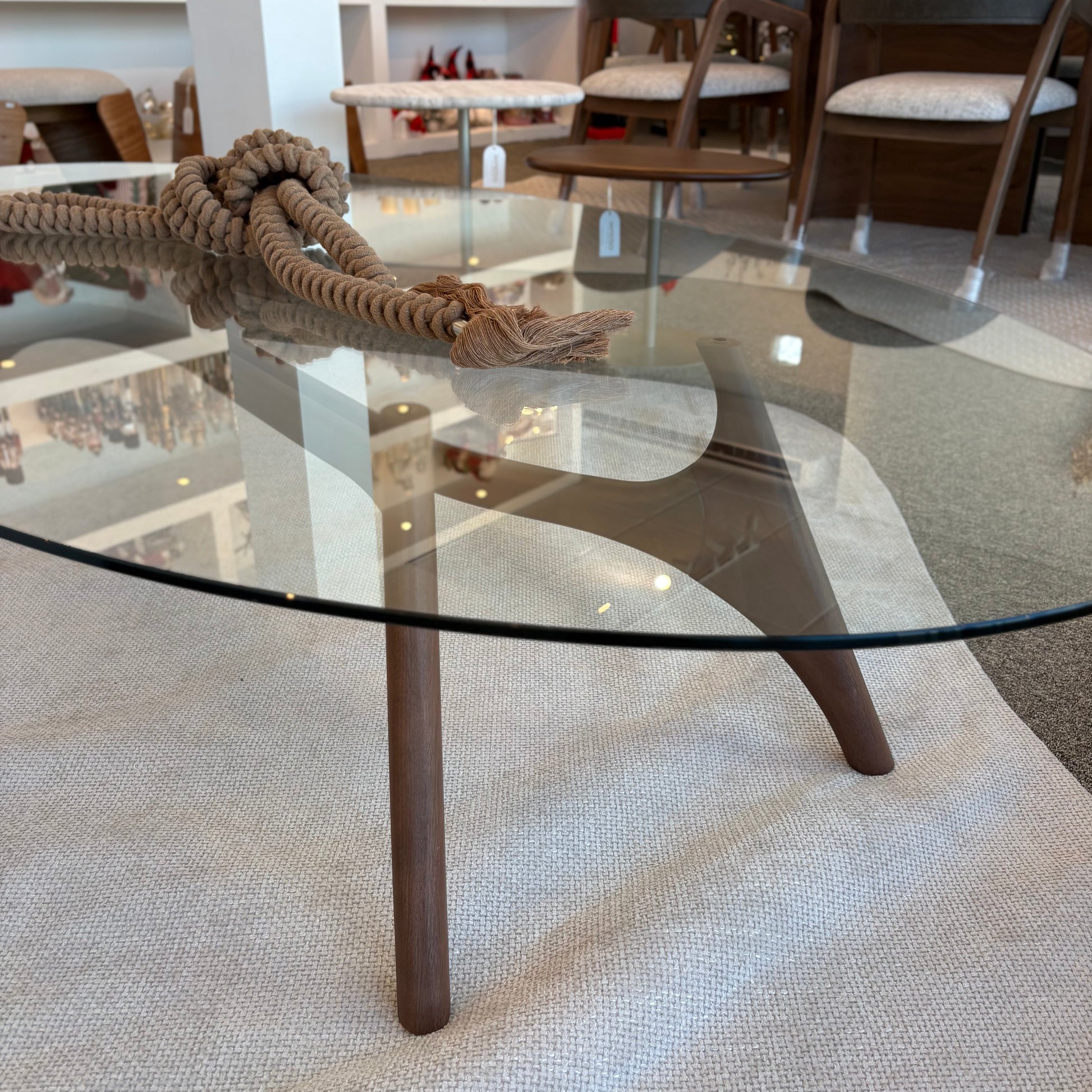 The Eiffel Coffee Table combines sculptural elegance with natural materials. Its solid wood base features fluid, architectural lines that gracefully support a clear glass top, creating a refined yet organic centerpiece. Perfect for contemporary or mid-century interiors, this table adds warmth, lightness, and sophistication to any living space.