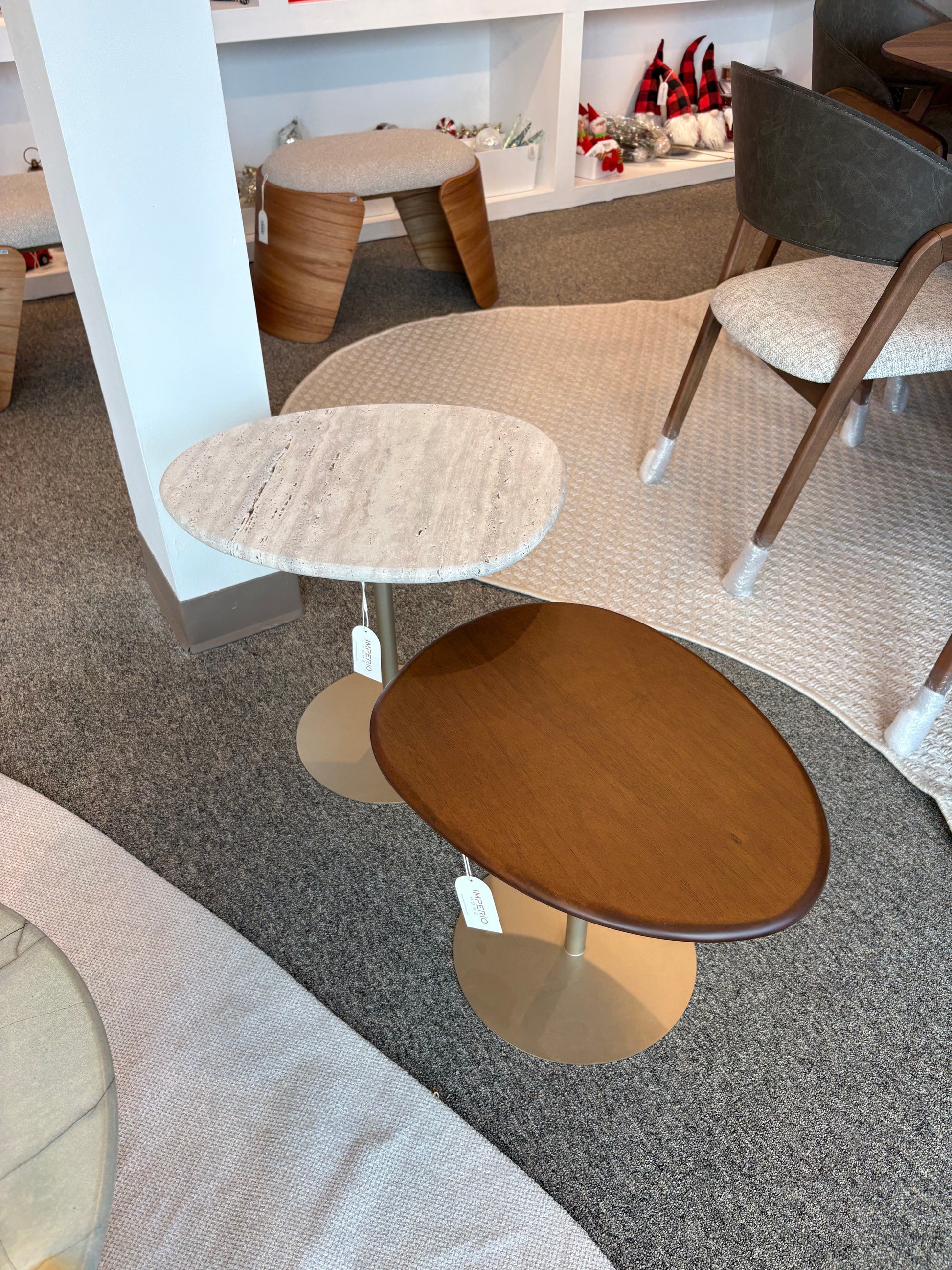 The Petala Side Table stands out for its organic form and elegant contrast of materials. Combining a wooden top with a travertine option, it adds warmth and sophistication to any setting. Perfect as a side table for lounges or bedrooms.