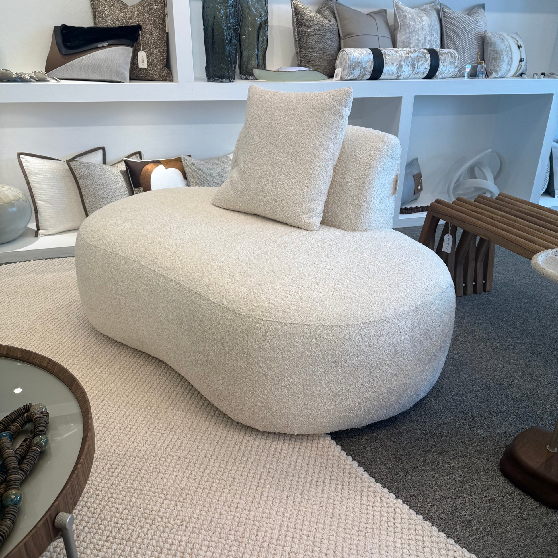The Roy Armchair features an organic, sculptural silhouette that brings softness and style to any space. Its plush texture and rounded form offer both comfort and a modern aesthetic.