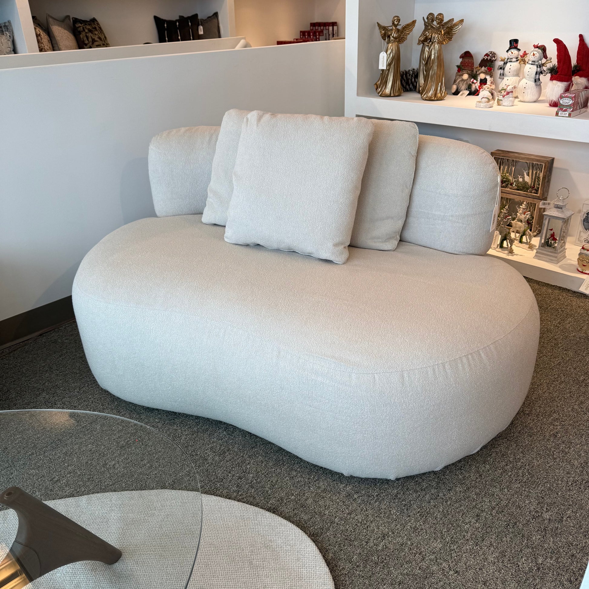 The Poltrona Ryan features a modern and inviting design with soft curves and plush upholstery. Its neutral tone and rounded silhouette make it a perfect statement piece for contemporary living spaces.