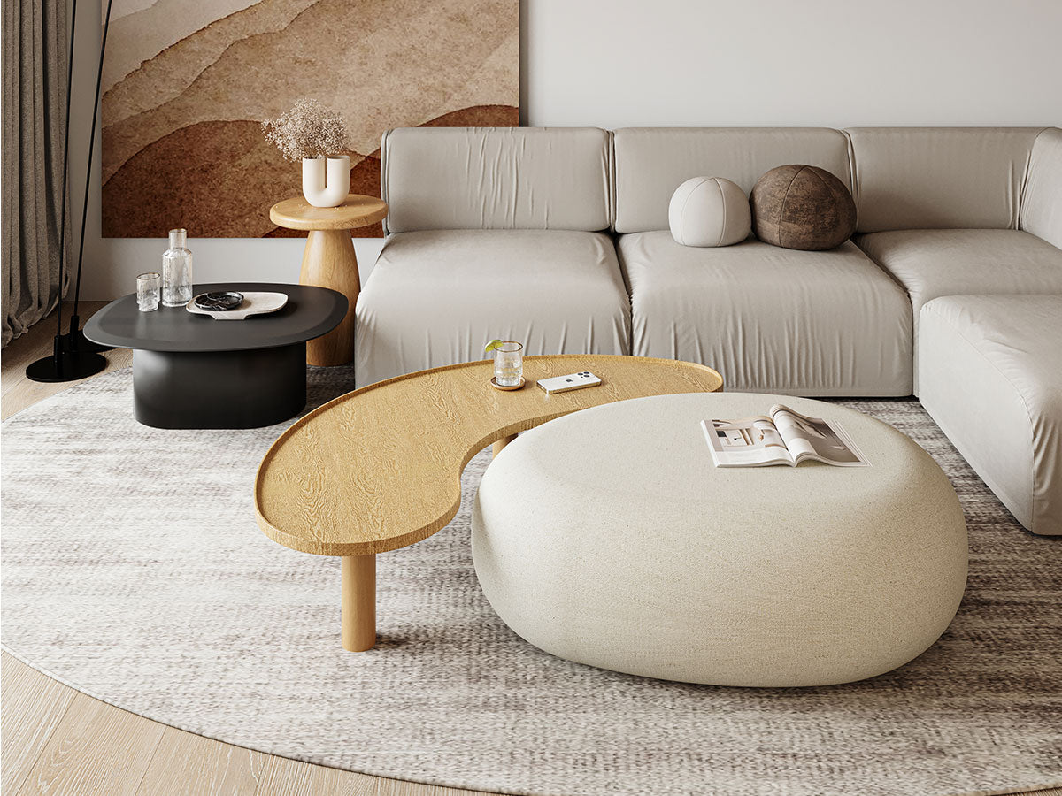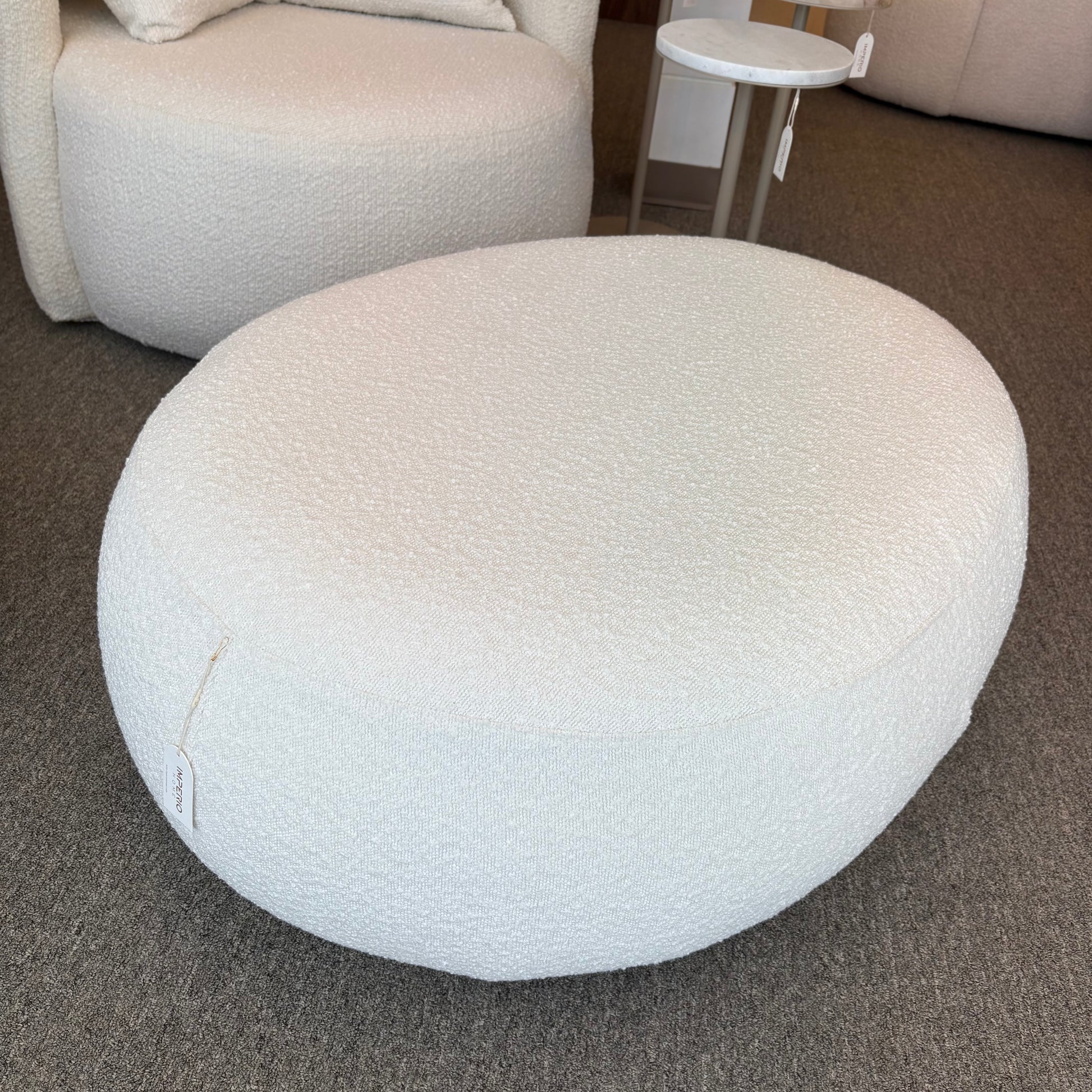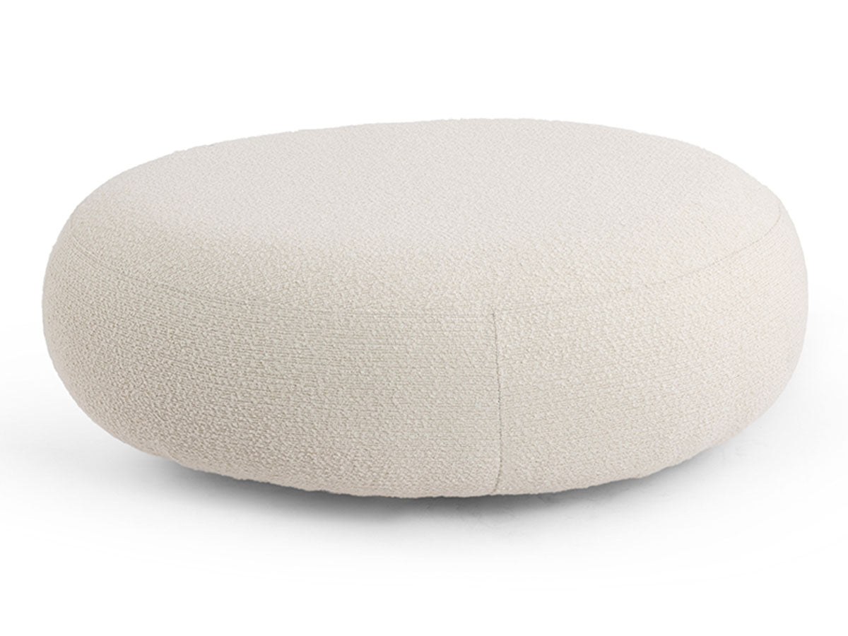 The Agata Pouf features a soft, rounded design that blends comfort and sophistication. Its generous proportions and smooth bouclé texture make it a perfect accent for modern interiors ideal as extra seating or a footrest.